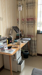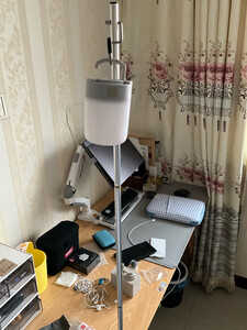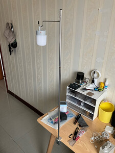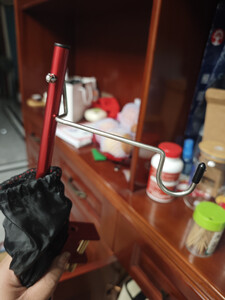 这根杆子挺轻的,虽然轻,但是不薄我而且挺稳的,夹在桌子上面的那一个配件很厚实,可以调节厚度。普通的露营蛋卷桌都是可以用得到很实用的一件小物件,它可以挂小灯,也可以挂中灯还可以挂