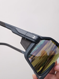这个墨镜镜片大,而且有弧度,可以很好的包裹住眼部,很好的遮挡阳光,防紫外线,价格实惠,性比价高,迪卡侬很不错