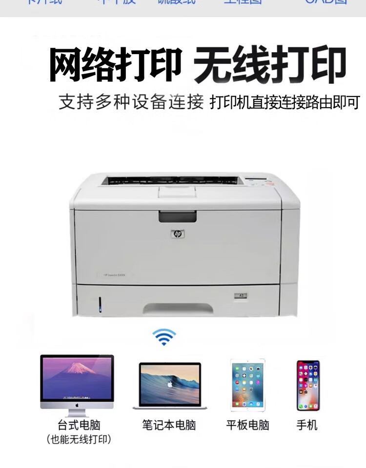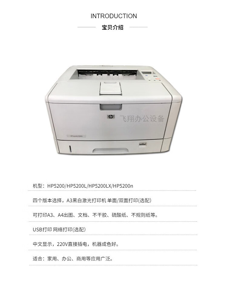 HP5200打印机a4a3学生作业试卷CAD图纸家用办公黑白激光打印复印机 5200(A3 A4无线+远程)九成新 标配