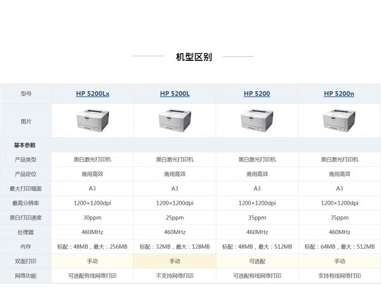 HP惠普5200HP5200N打印机A3CAD图纸学生试卷双面网络黑白激光打印机 HP 5200L打印机 官方标配