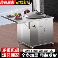 狄丽莫 柴火灶农村家用灶不锈钢移动灶柴火炉无烟地锅土灶台大锅灶加厚 特厚56cm-单灶【无侧板铜水箱】