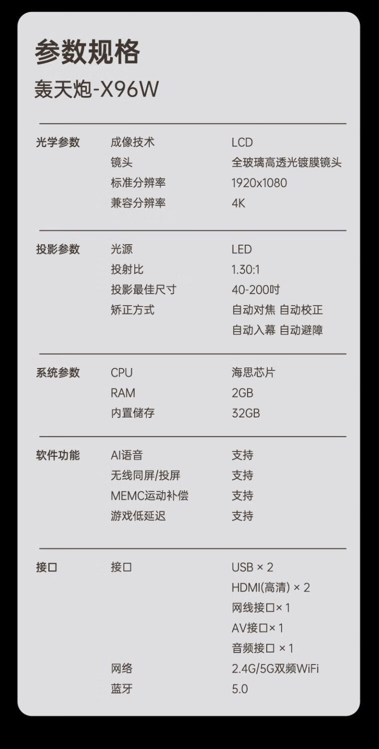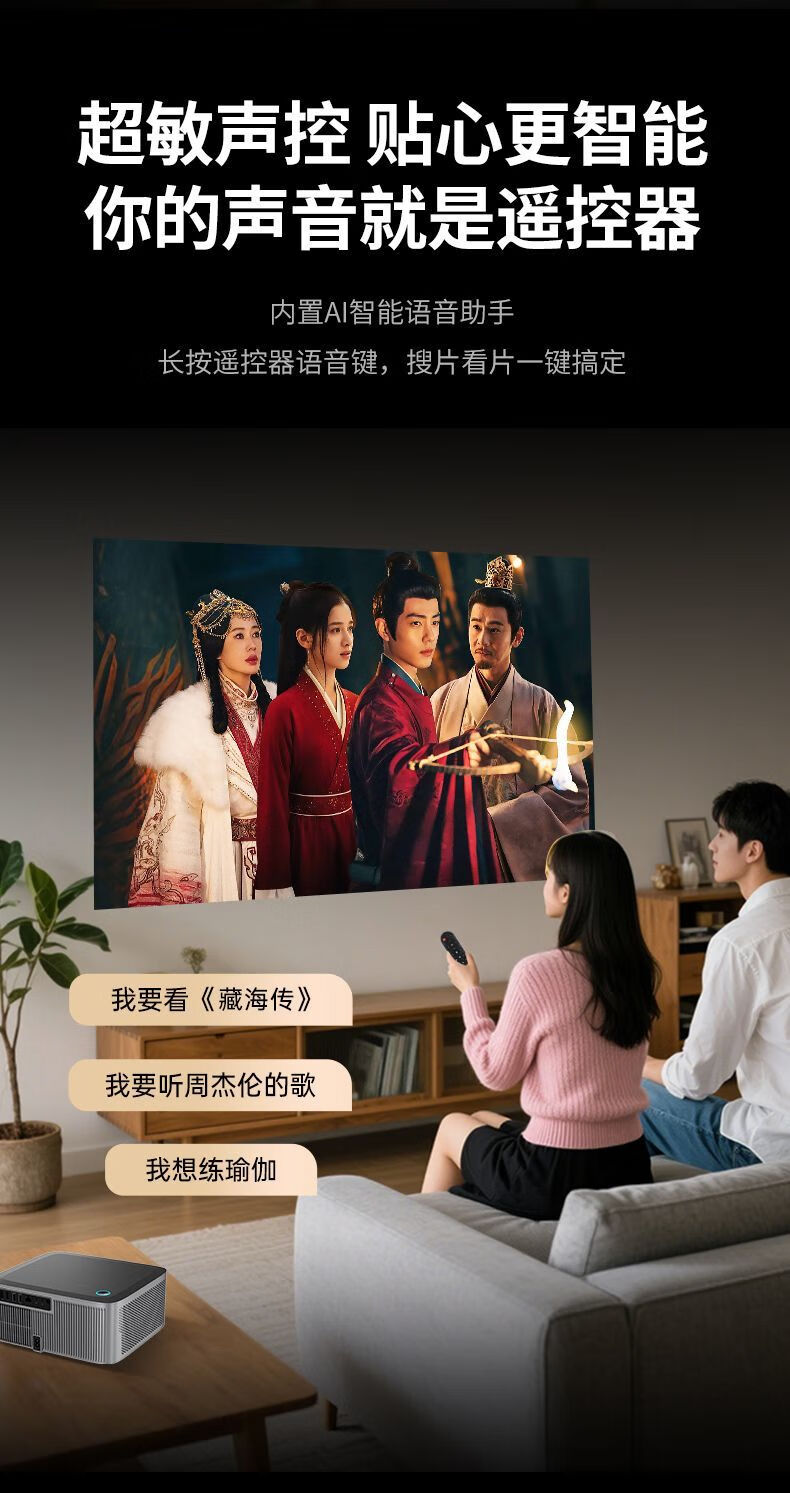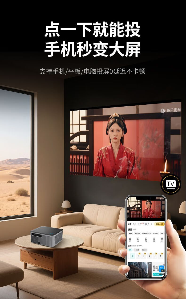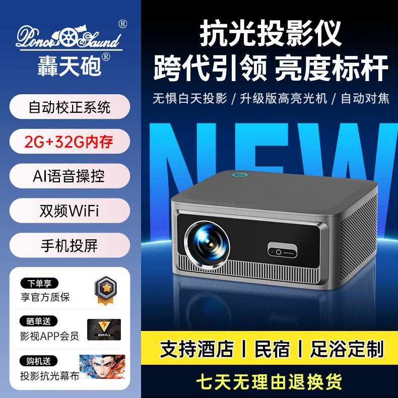 轰天炮G50W【全封闭光机】家用卧室墙投家庭影院高清无线投屏5G投影仪机 小型百元旗舰1080p投影大屏 高亮语音版 【2+16G大内存】轰天炮G50W