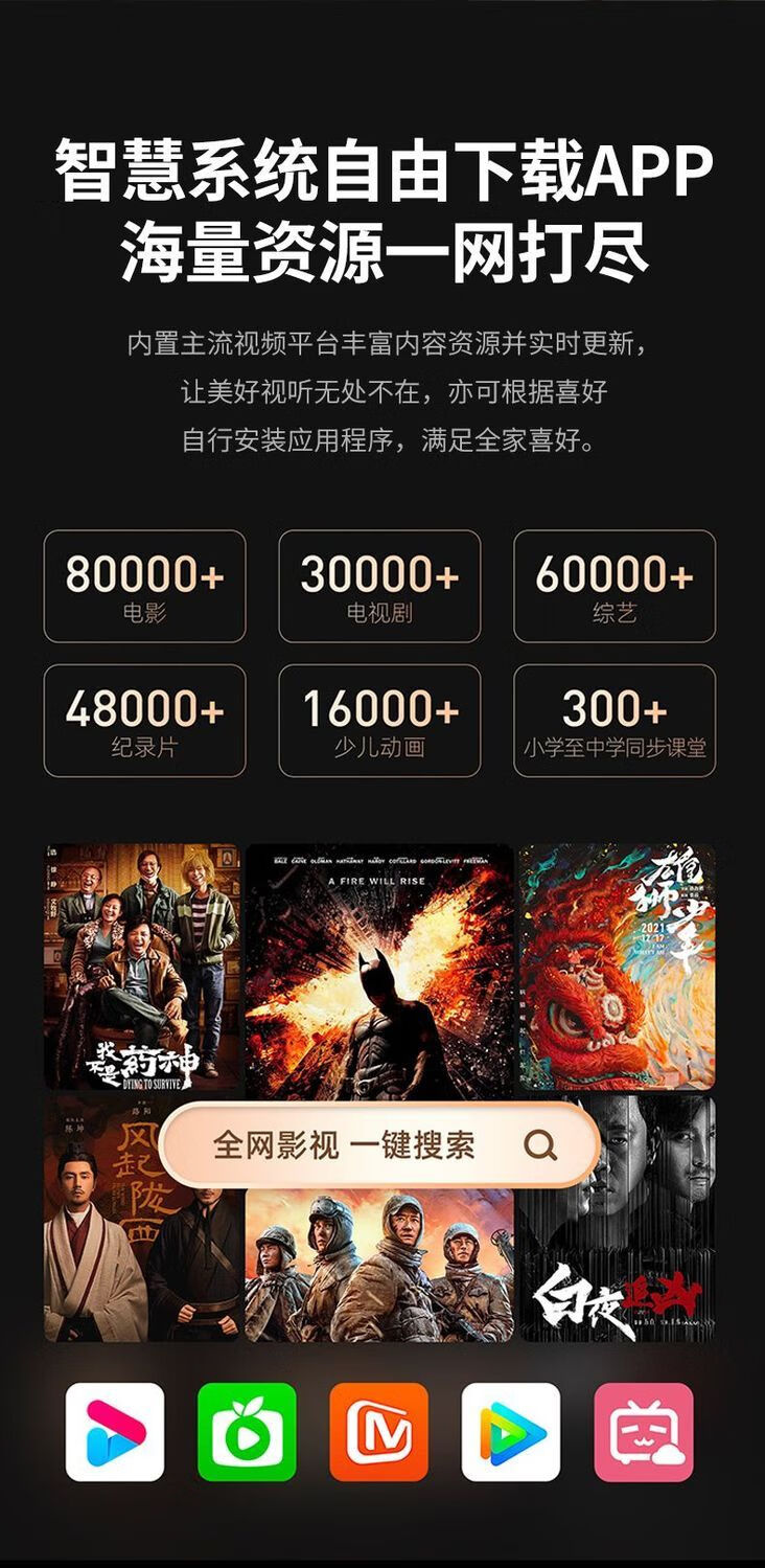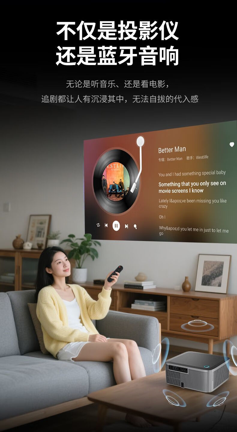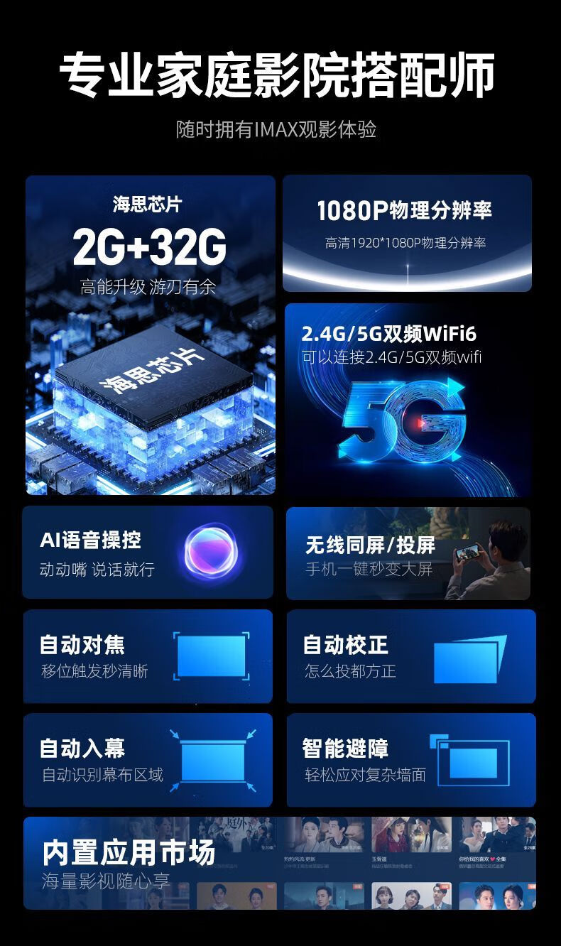 轰天炮G50W【全封闭光机】家用卧室墙投家庭影院高清无线投屏5G投影仪机 小型百元旗舰1080p投影大屏 高亮语音版 【2+16G大内存】轰天炮G50W