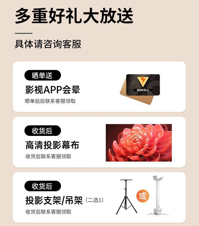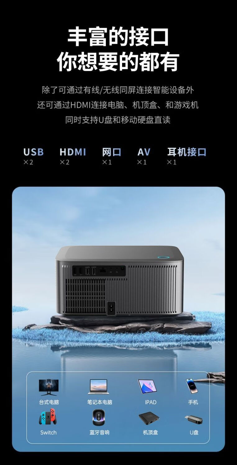 轰天炮25新款V66W全封闭式云台投影家用超清卧室客厅投墙酒店宿舍 【自动对焦 32G大内存】V66W云台投影