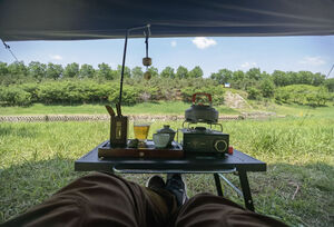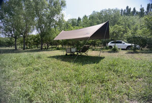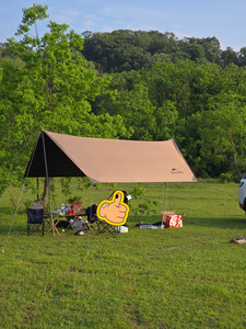 4级风以下天气使用毫无压力(推荐有搭建天幕经验的,新手建议入手云界速开天幕,撑伞式的没啥门槛),单人搭建25分钟吧(中途遇到隔壁营位6个大学生搭了半个小时……),只要会打风绳扣,会打地钉,拼插的支杆用料还算扎实,短边顺风向搭建一般不会有问题,黑胶的材质厚度可以。选它主要是户外喝茶使用,体积小、收纳方便,有使用经验的推荐入手。