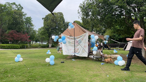 买的第一款天幕,第一次搭起来,很完美,可能是太低配了哈哈哈哈没有挂灯的地方🥹