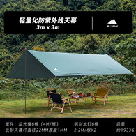 三峰出三峰出全能210T天幕多用途涂银天幕防风防雨防晒配反光绳带杆 3X3草绿涂银【带铁杆】