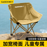 格术户外折叠椅折叠桌月亮椅钓鱼椅马扎便携式高背躺椅露营装备套装 儿童款-中号卡其色+加粗钢管