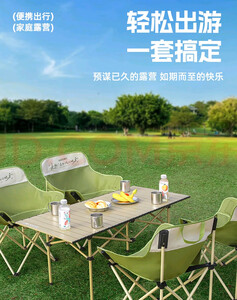 格术户外折叠椅月亮椅露营椅马扎折叠凳沙滩椅便携式桌椅露营装备全套 推荐套装-95长桌+4把奶绿色月亮椅
