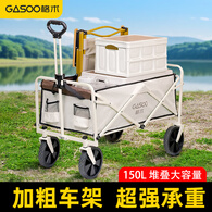 格术户外露营车折叠推车拖车折叠超大野营手拉车小推车野餐车买菜车 米色静音万向轮后开款 150L