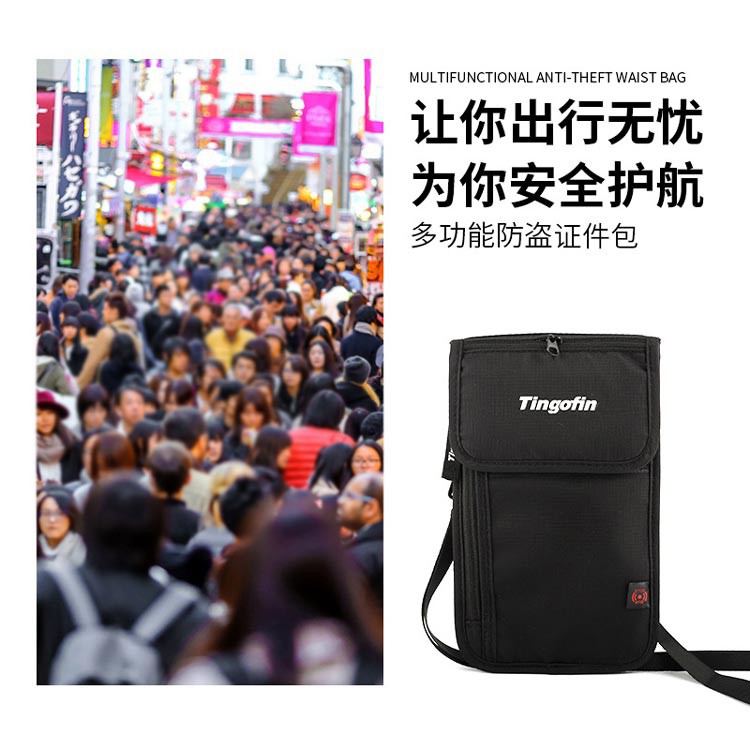 弗曼途防盗刷旅行护照包多功能证件收纳包防水护照夹出国挂脖手机卡钱包 黑色防盗刷包21*12.5cm