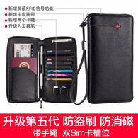 VANLEMN丹麦防盗刷牛皮护照包创意多功能证件包出国旅行收纳袋护照夹长款 黑+黑色【防盗刷防消磁护照包】