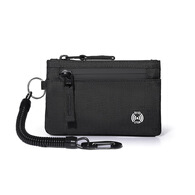 VANLEMN丹麦防盗刷零钱包屏蔽RFID欧美防磁卡夹出国旅行留学卡包伸缩腰挂 黑色【黑拉链+挂绳】