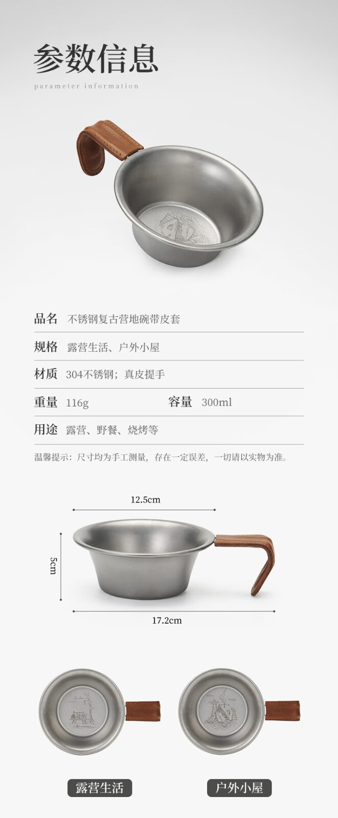 vidalido维达利多户外不锈钢雪拉碗食品级露营野餐登山烧烤便携把手碗碟 雪拉碗|304不锈钢(银色)