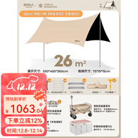 原始人天幕户外露营桌椅六件套野营大号防晒免搭银胶遮阳棚 (22㎡)奶油咖【8人小聚】