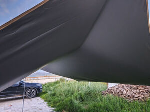 今天周六,第一次使用新买的原始人天幕,这款天幕的展开面积大,安装比较方便,坐在里面能够很好地遮阳挡热,体验感不错,价格相对来说比较实惠,总体来说,性价比还是很高的。