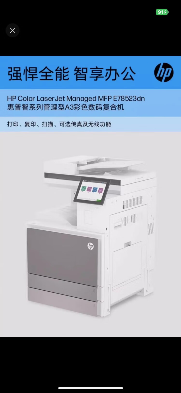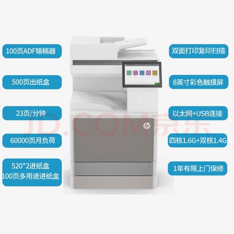 惠普(HP)E78523DN a3彩色激光多功能复合机 WiFi无线网络双面打印/复印/扫描一体机(一年上门保修)