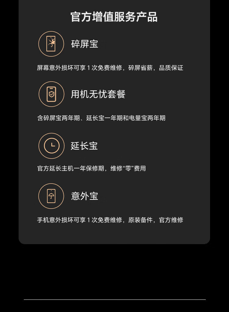 手机(内置电池)*1 充电器*1 数据线*1 保护壳*1 快速指南*1 取卡针*1 保护膜(出厂贴在手机上)*1 三包凭证*1 会员权益礼包*1