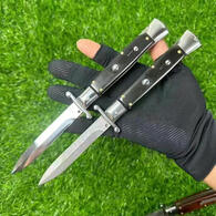 意大利黑手党守护神牛角大马士革户外战术快开便携防身水果折刀 守护神镜面刃【牛角黑柄】 刃长10cm-大于50°