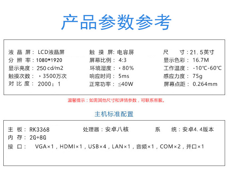恩腾 壁挂吊挂广告机水果酒店液晶显示屏奶茶店吊装点餐价目表切换画面滚动灯箱展示牌海报机显示屏 21.5英寸单机吊挂广告机