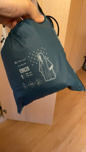 便携性能:雨衣有自己的收纳袋,很方便收纳,比较小一个,装背包里很合适。产品材质很扎实,耐磨,不容易坏,适合上下班的社畜带上,预防下雨。