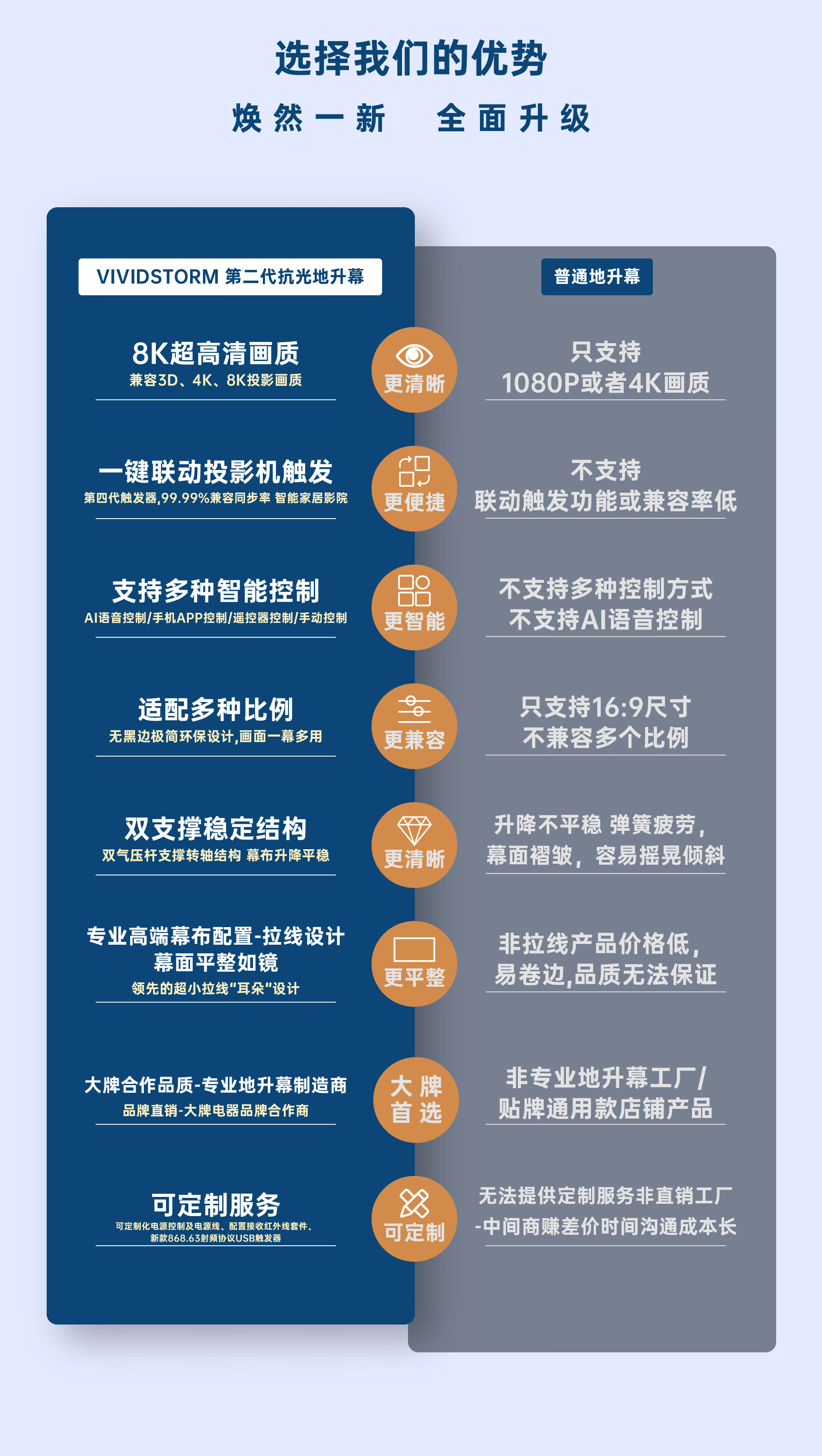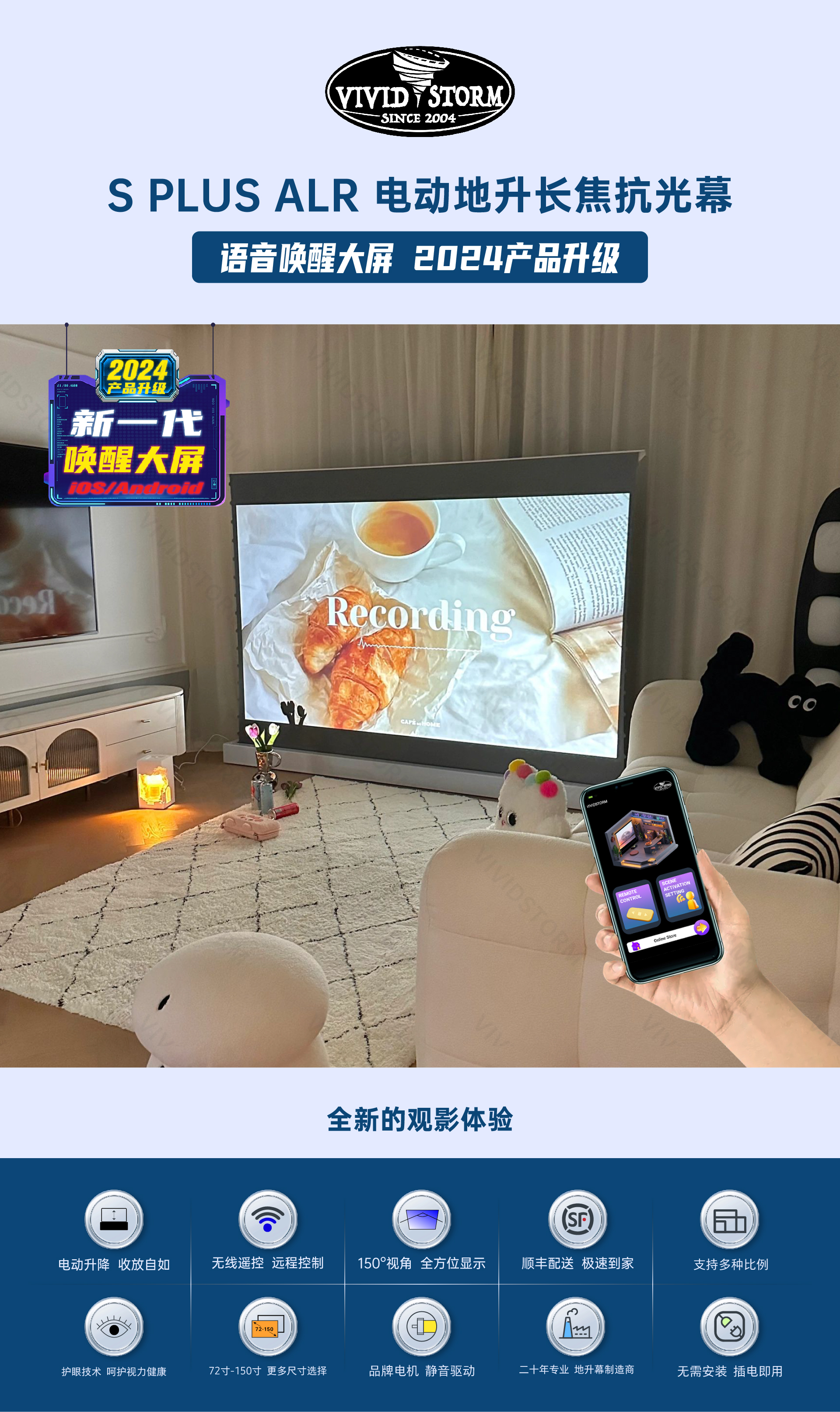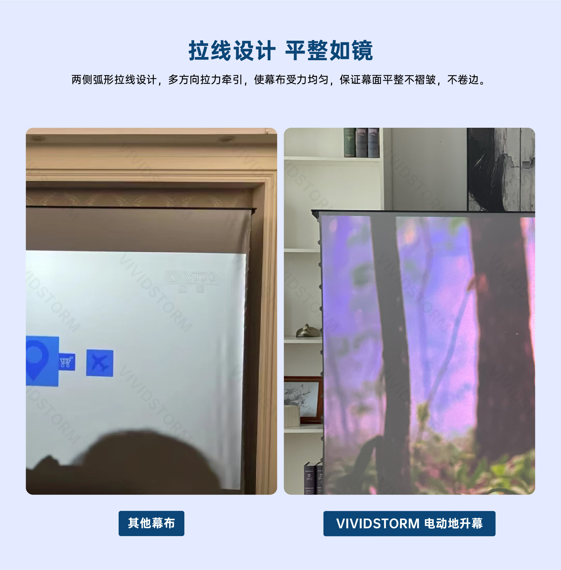 VIVID STORM SINCE 2004地拉式电动投影屏幕高清抗光地升幕长焦距拉线高增益幕布 S 3D ALR 长焦抗光/幕面打孔/黑壳 135寸(长度3米22)