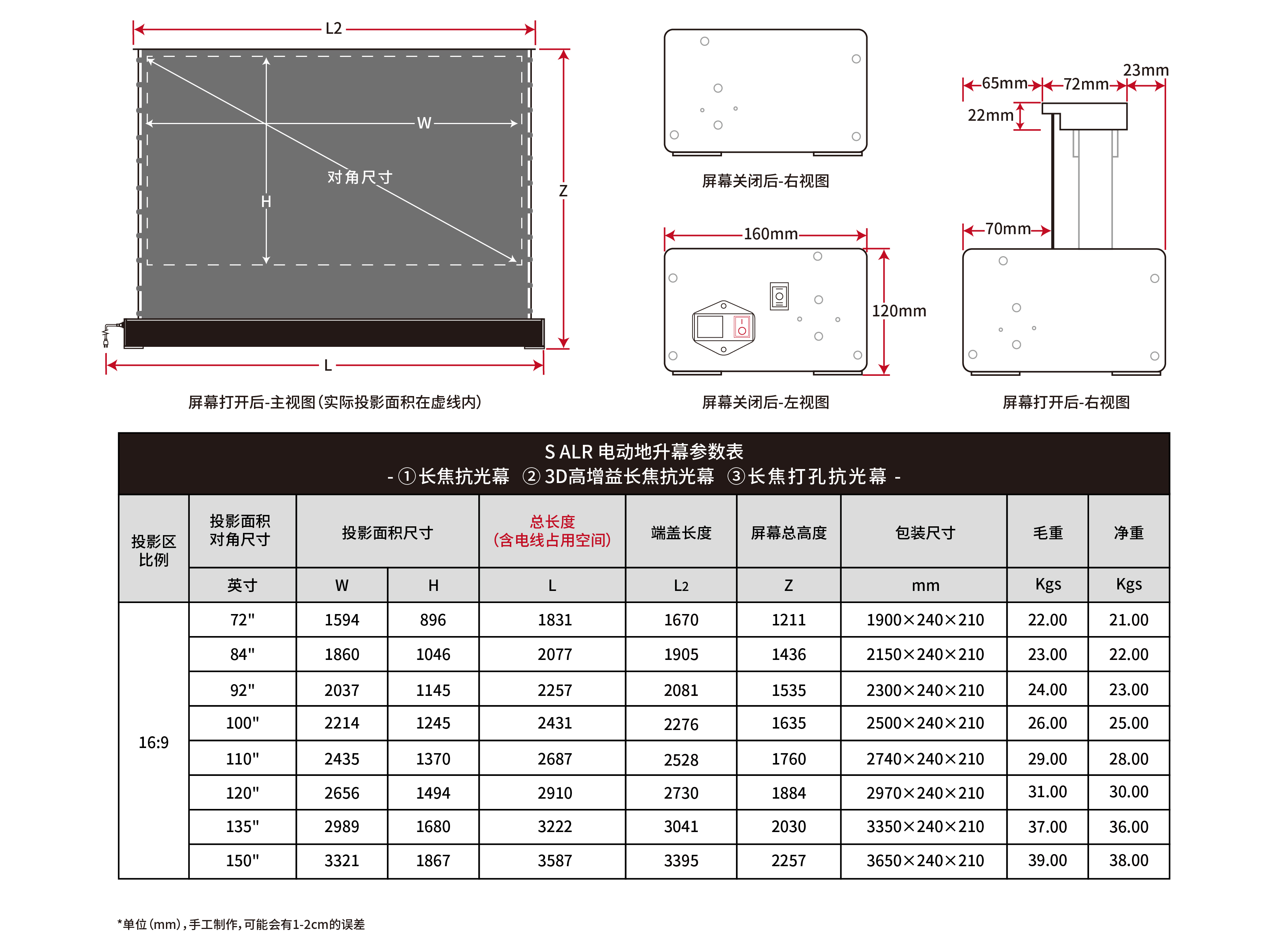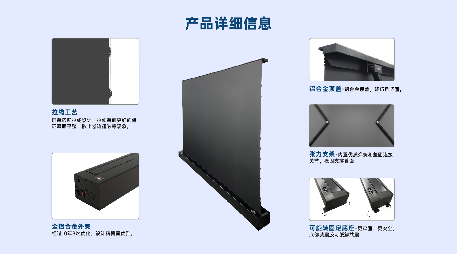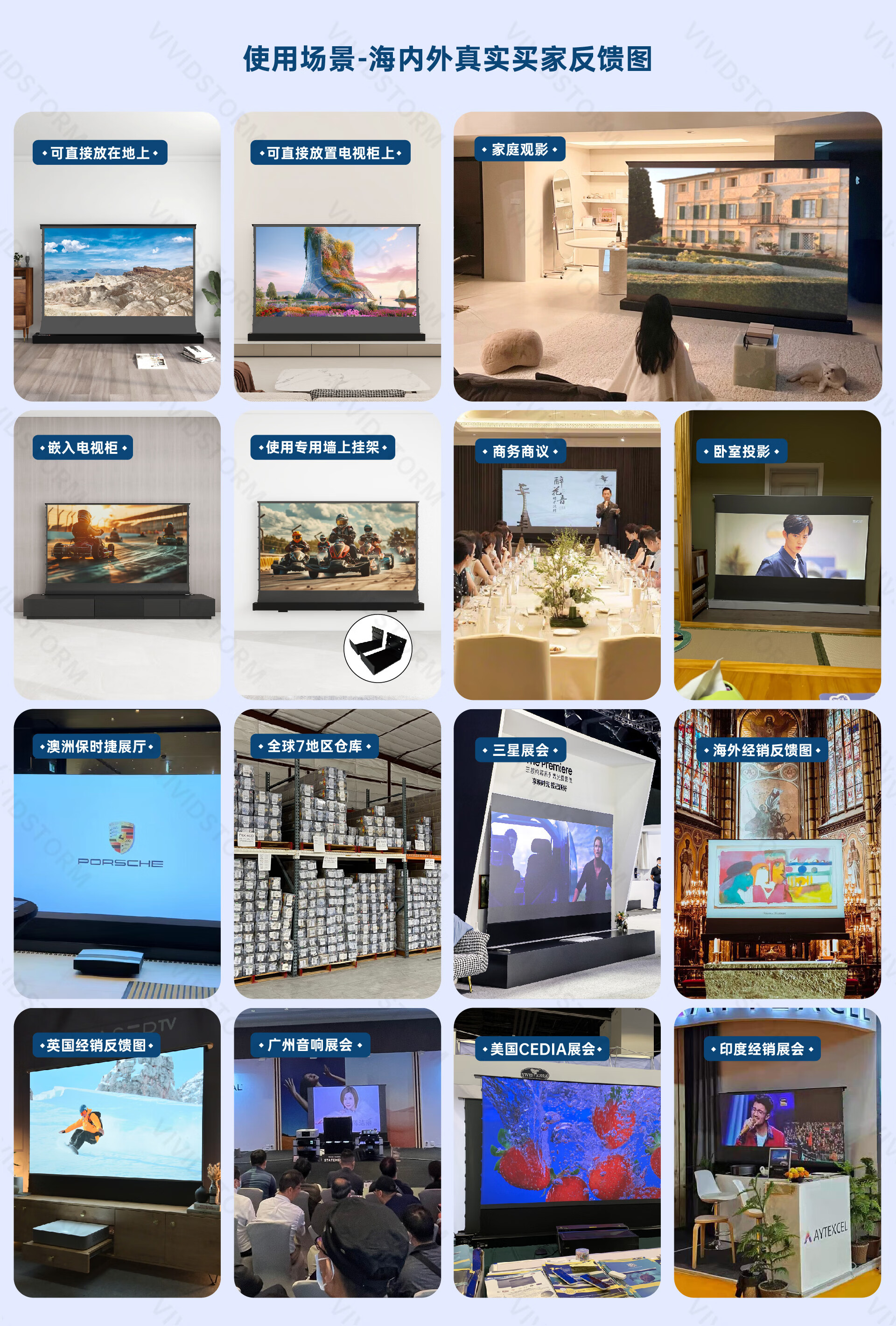 VIVID STORM SINCE 2004地拉式电动投影屏幕高清抗光地升幕长焦距拉线高增益幕布 S 3D ALR 长焦抗光/幕面打孔/黑壳 135寸(长度3米22)