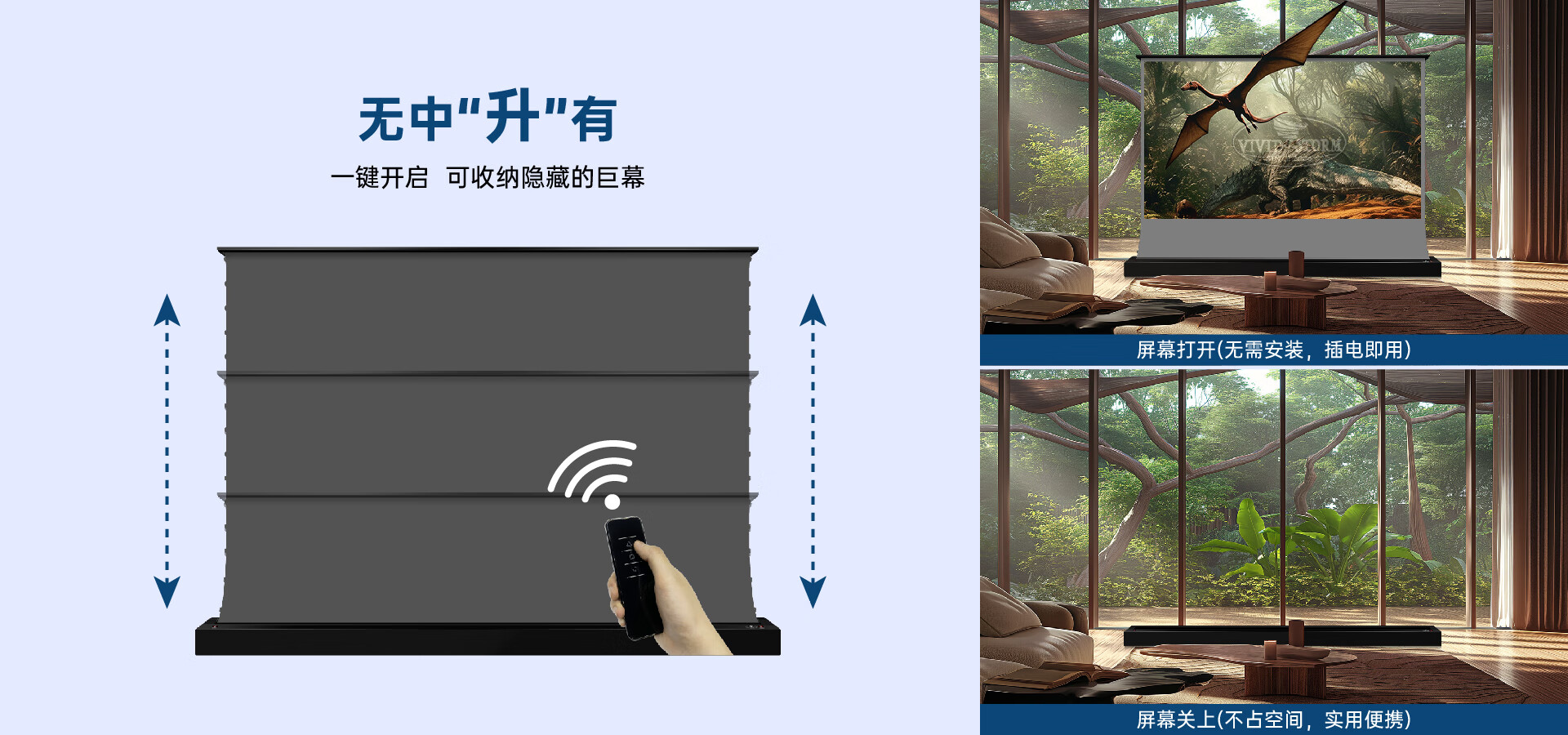 挺方便实用的吗不需要安装,插电就能用升降的时候很静音也很稳当不会晃动。幕面平整,这是白天效果,还是很满意的。