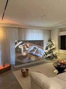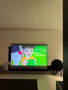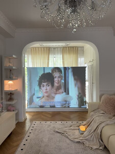 晚上下班回到家,升起幕布再开个小灯,氛围感这不就来了嘛,真的像在电影院看电影的感觉~