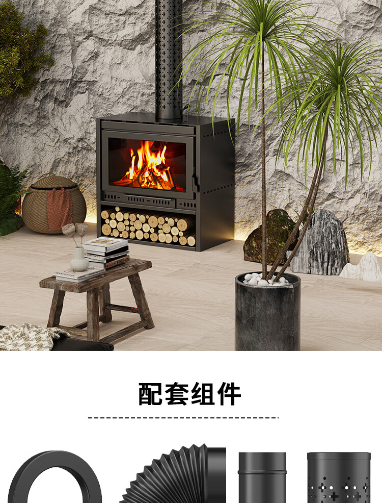 莱菀妲农村别墅柴火取暖真火壁炉室内颗粒烤火无烟家用燃木壁炉采暖 【43型】小壁炉带腿(供暖20-30平)