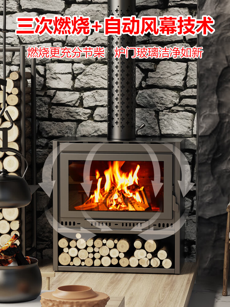 壁炉真火木柴家用别墅农村室内冬季取暖器燃木柴烧柴冬天柴火炉 50型带烧水口