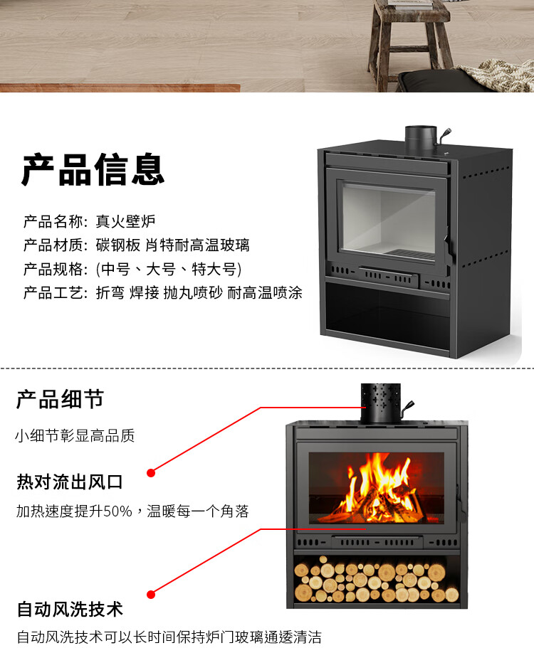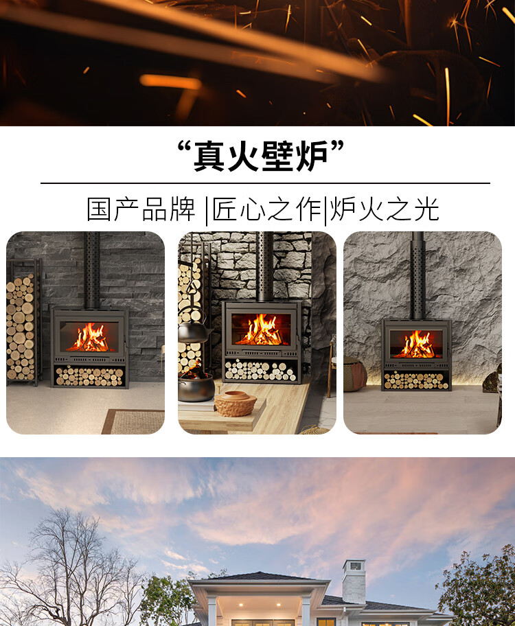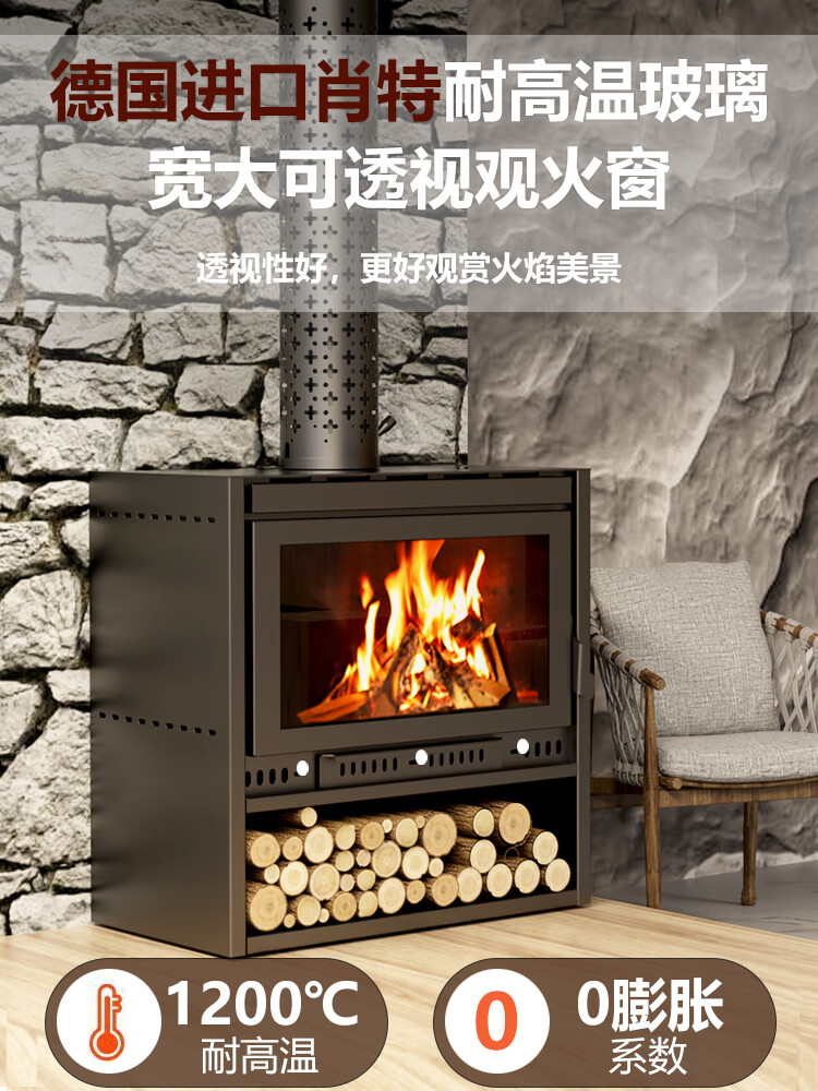 满钵真火壁炉木柴冬天取暖家用取暖炉燃木柴火民宿别墅农村温暖取暖器 【80豪华大面屏】观火盛宴