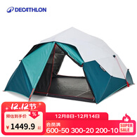 迪卡侬露营帐篷户外野营加厚防雨野外防晒遮光QUMC 快开三人露营帐