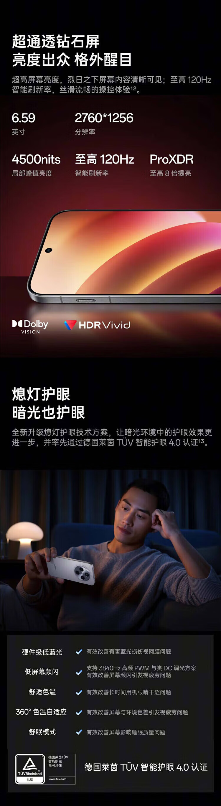 AI大模型,轻薄,高频PWM调光,无线充电,NFC,红外遥控,大底主摄