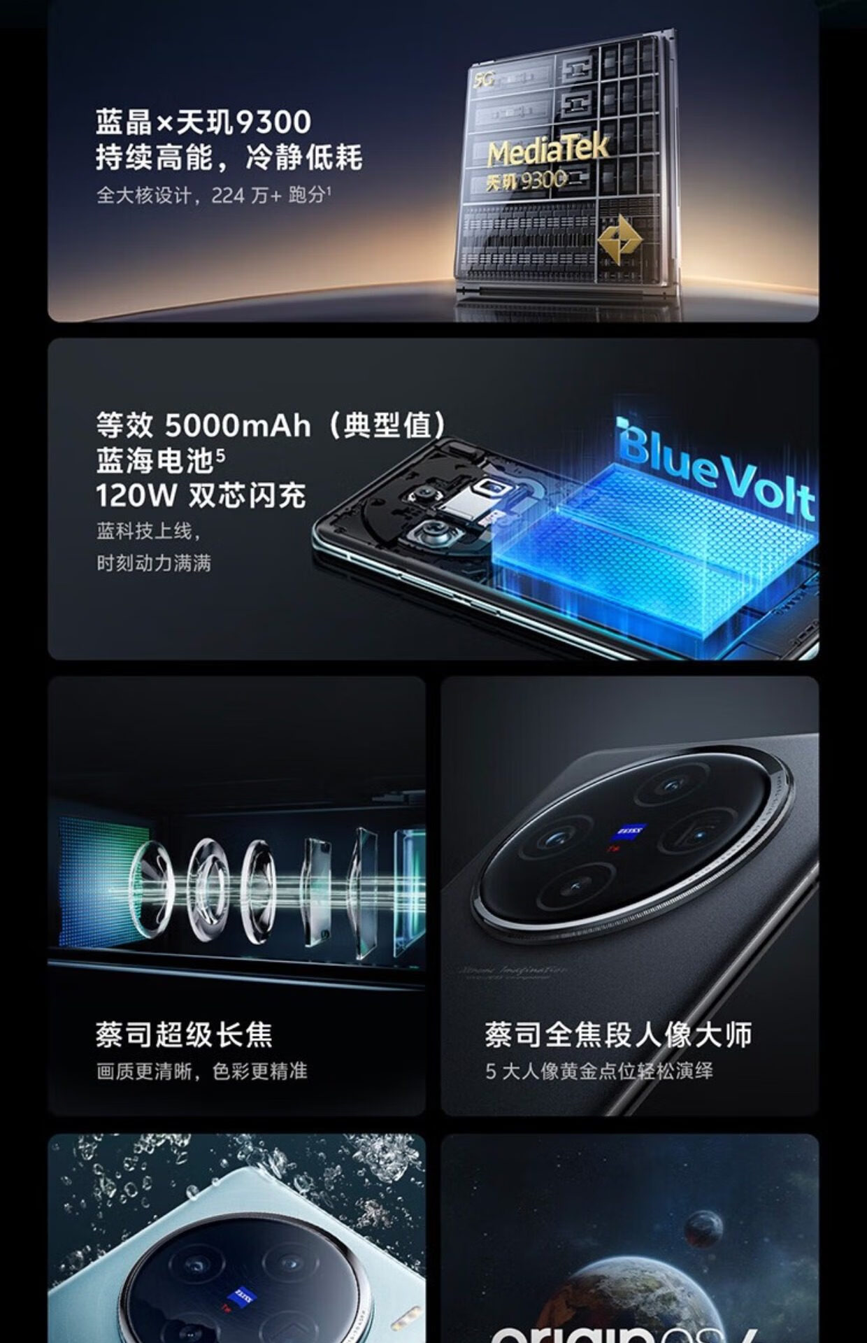 vivoX100新款天玑9300高清拍照游戏5G手机全面 x100 辰夜黑 现货 当天发顺丰 16GB+512GB