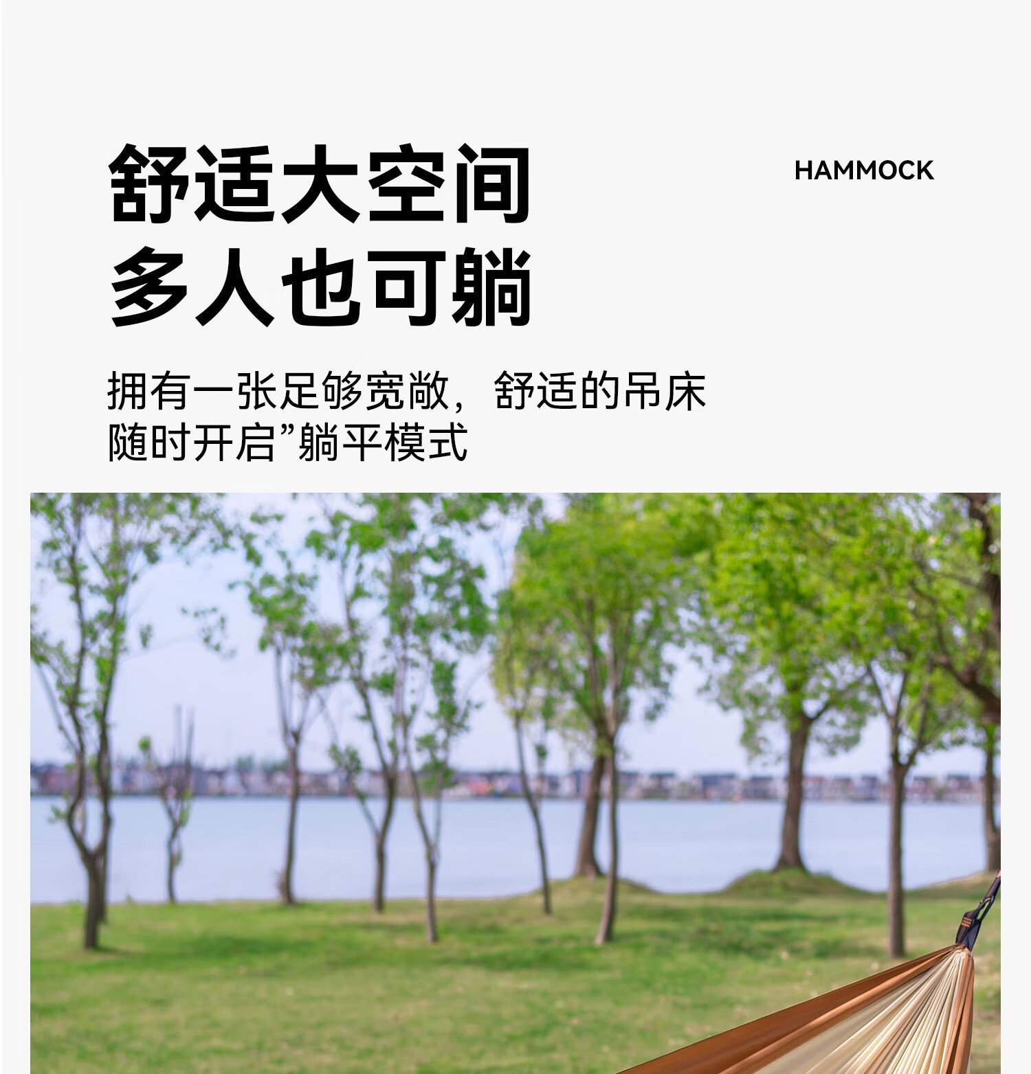 一直想找个能让我彻底放松的户外装备,这款吊床简直是完美答案!材质结实抗造,布料透气又耐磨,钢管也很坚固。安装特别省心,一看说明书就会。吊床称得上是露营标配,大人孩子都很喜欢。