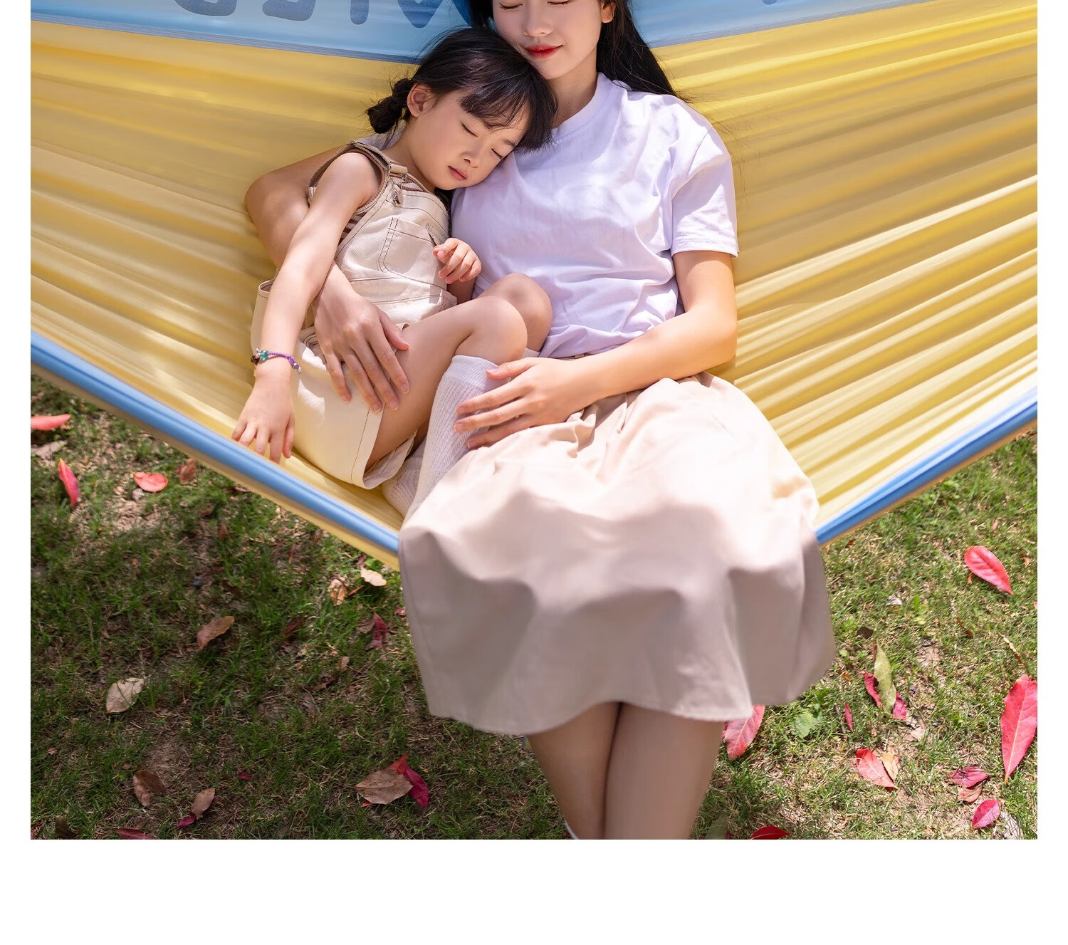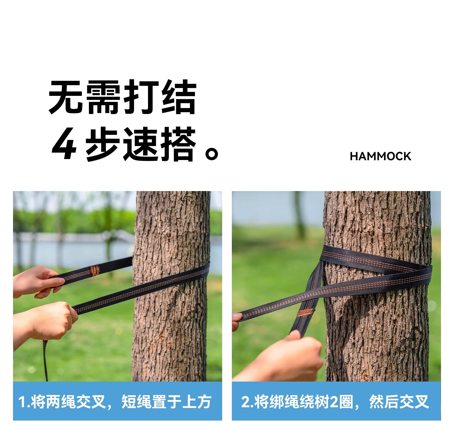 选了很久还是选择了这个,虽然比其他的稍稍贵点,特意买了两人的,用上真心不错,质量真是很棒,直接扣树上简单好用,很轻便!值得推荐!