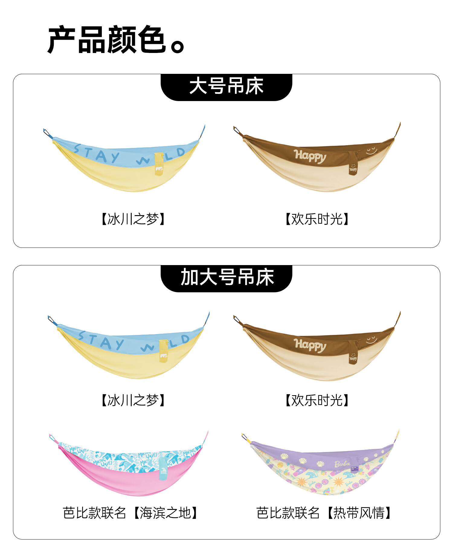 原始人吊床户外露营加厚防侧翻成人降落伞布双人秋千室内露营夏季便携 芭比联名热带风情-赠绑带+登山扣