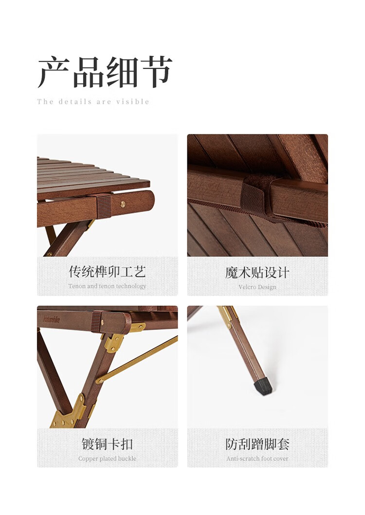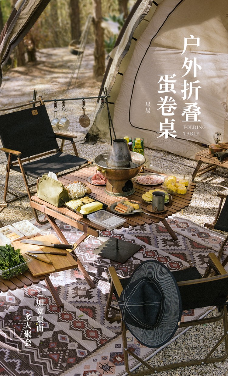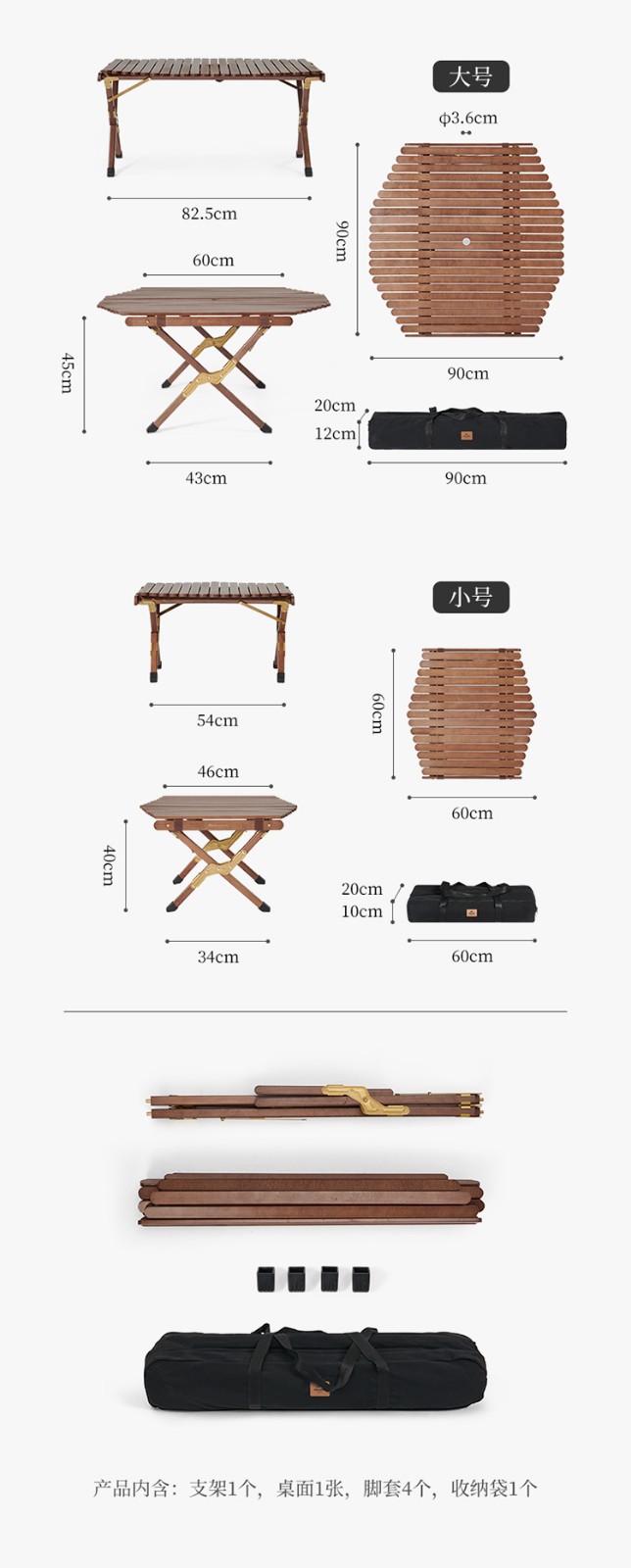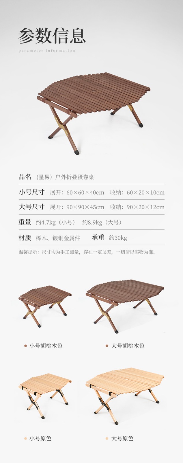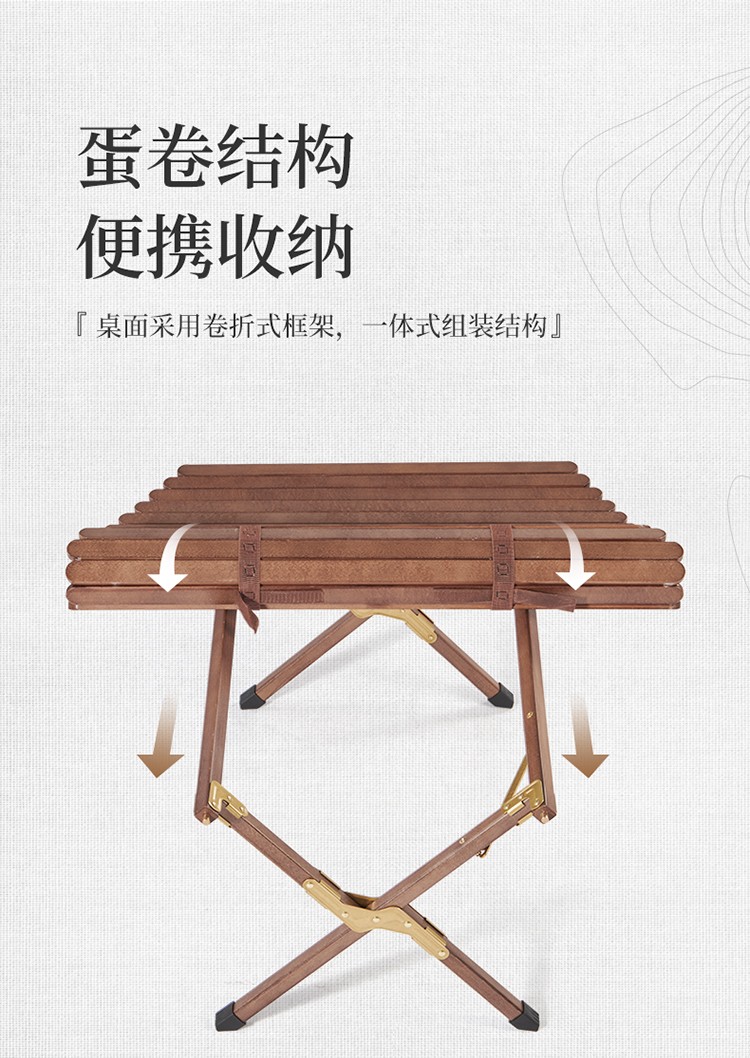 Naturehike挪客星易户外折叠蛋卷桌实木蛋卷桌露营野营桌子便携式野炊野餐桌 原木色(小号)
