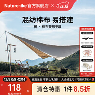 Naturehike挪客悦棉布菱形天幕 户外露营野餐野炊烧烤聚会遮阳篷防晒 流沙金/配杆子