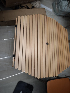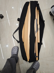 实木,包装比较长,很实在 适合搬家露营。 整理了一套,等凉快了出去玩