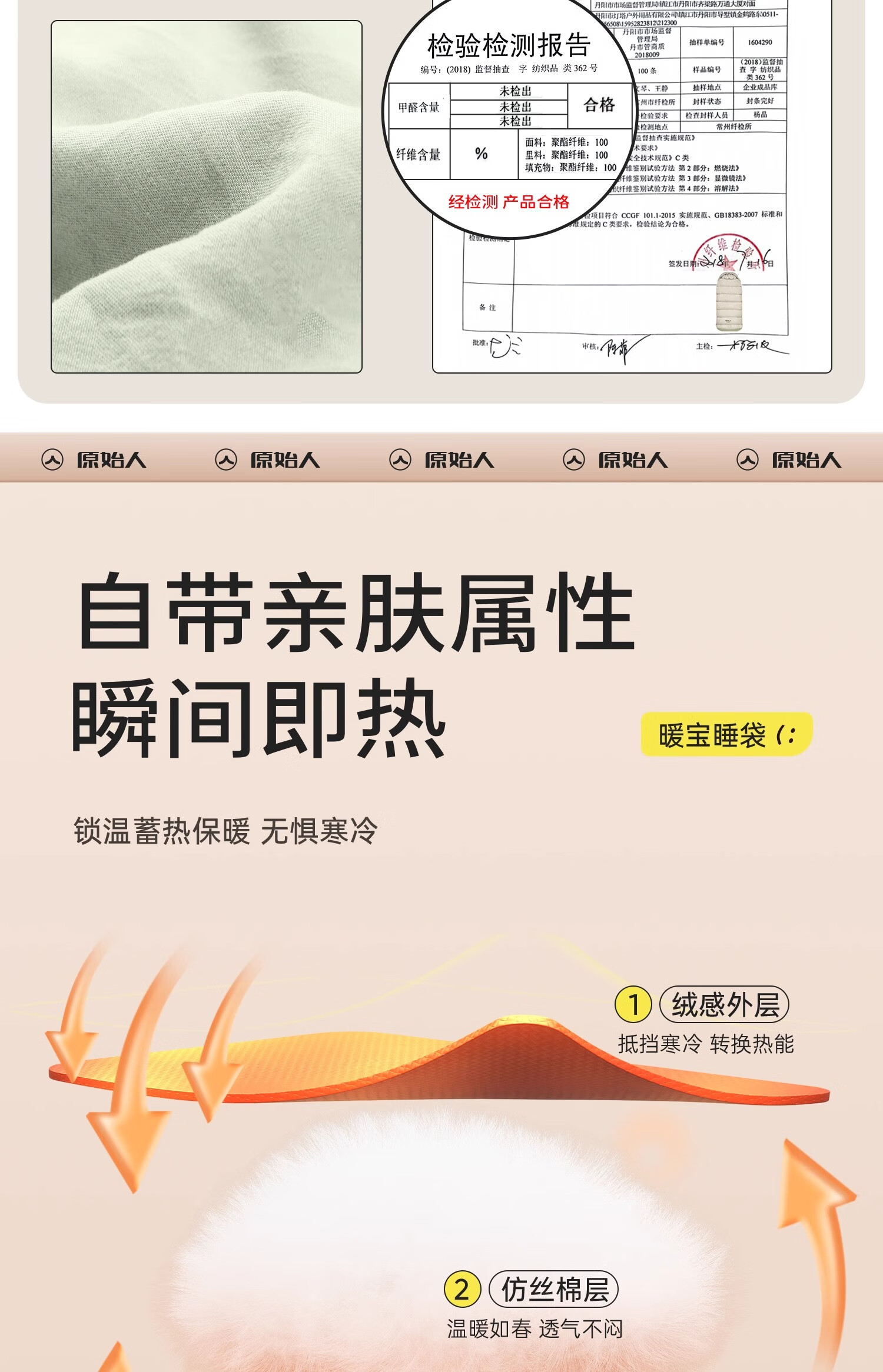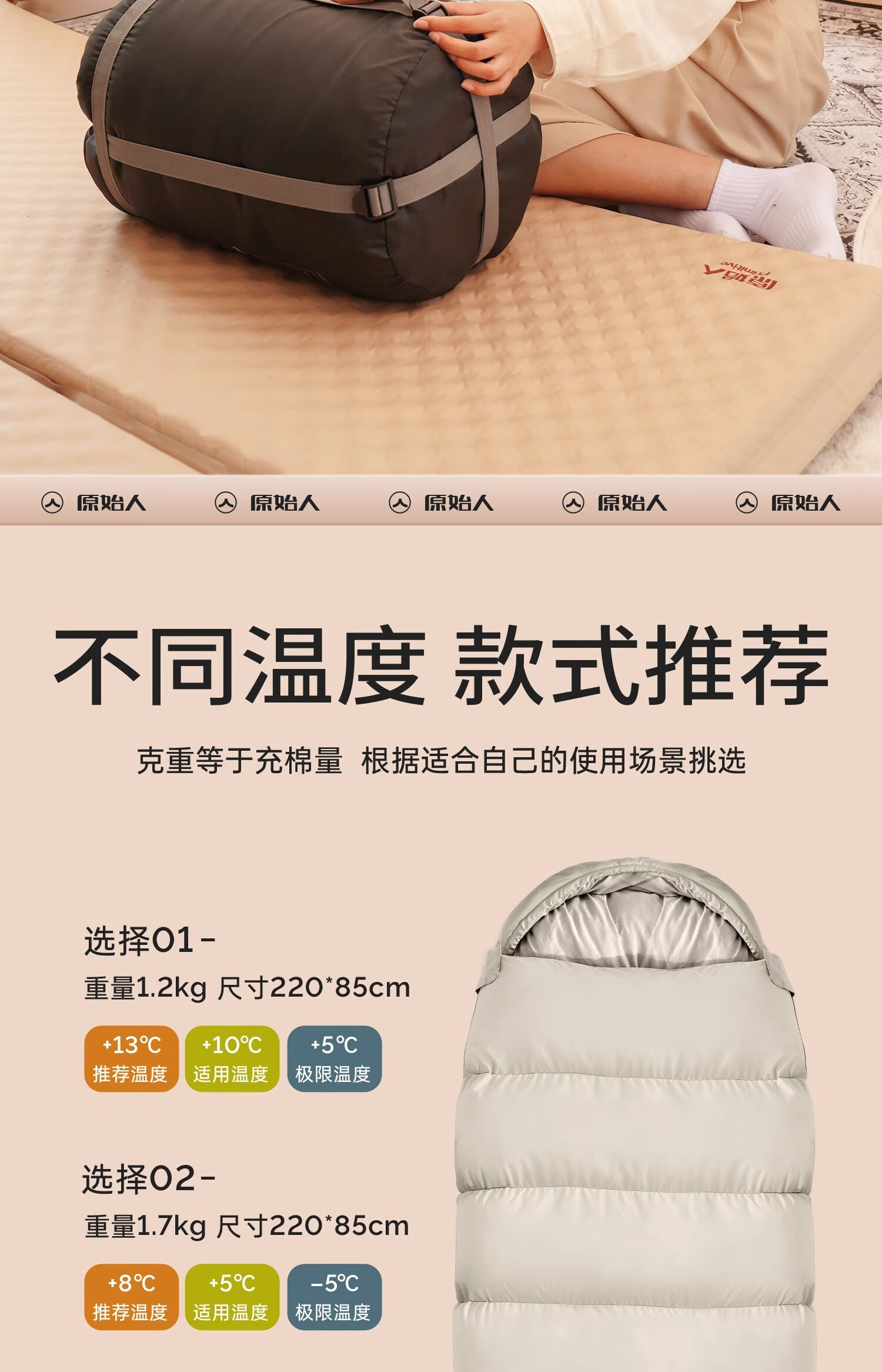 原始人睡袋秋冬款成人加厚户外露营防寒双四季午休办公室冬季保暖 1.2kg右 5~20℃春夏 机洗带收纳