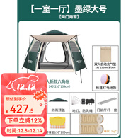 原始人帐篷户外六角野营加厚防雨露营装备全自动野外便携式帐篷 【床+睡袋套装】大号墨绿