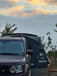 Black dog的穹顶天幕真不错,这回买的他的配件,质量很好,安装简便,配合其他配件一起使用可把天幕改造成帐篷或者连接其他设备!