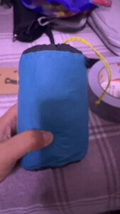 雨衣是买的重的那一款,但是呢这个重量也还是可以接受的,也不是那那么特别特别特别重,所以便宜一半还是划算的。然后确实防雨嗯下应该遇到了一个中雨,其实还是可以的,也比较大遮得住物包