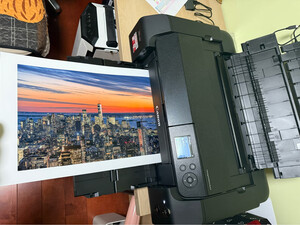实物超级大,占了大半张桌子。打印机设计很贴心,每步显示器都有教程提示,第一次打印效果感觉一般,立刻换了进口纸,色彩饱和度明显高了,其他艺术纸还没试。整体感觉不错