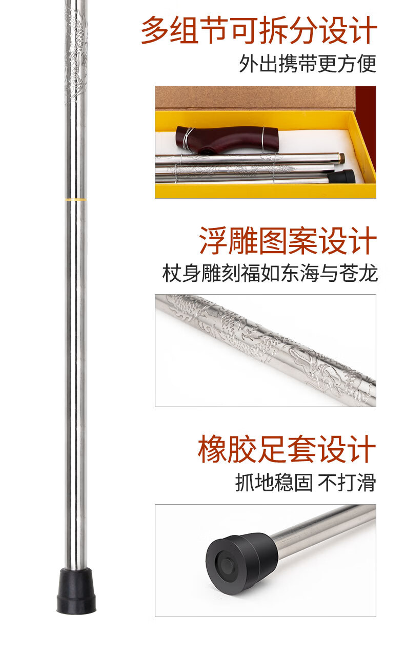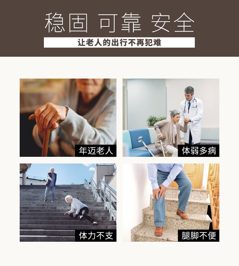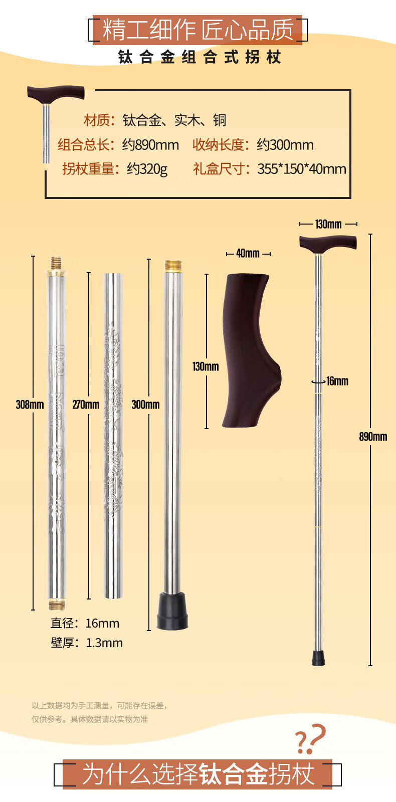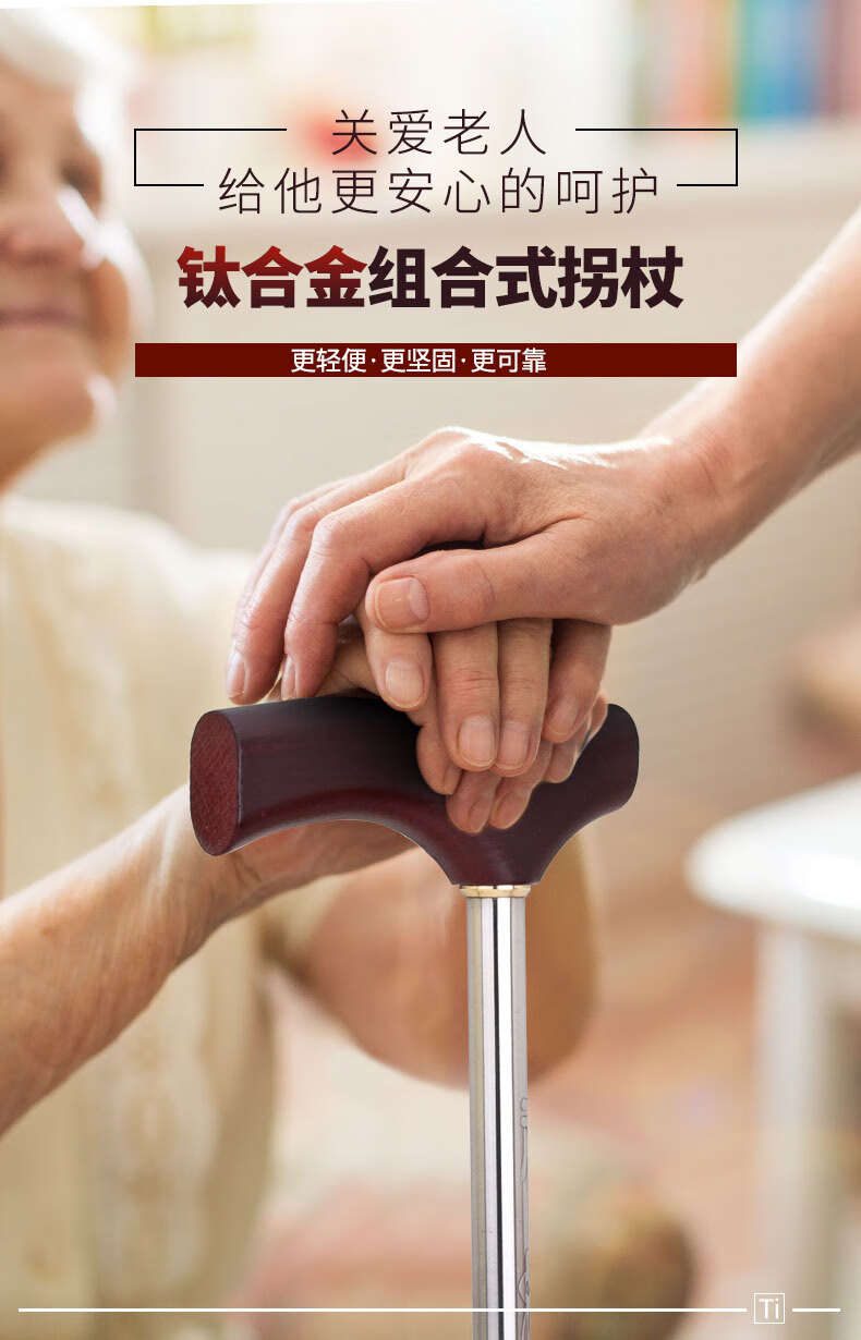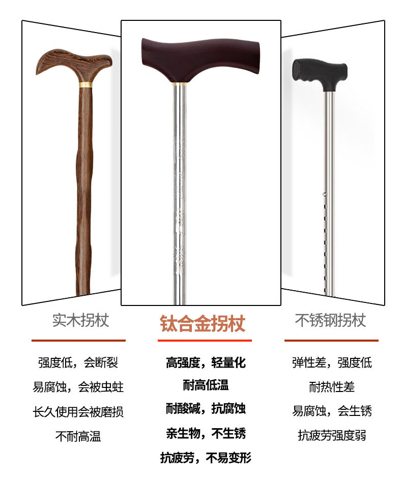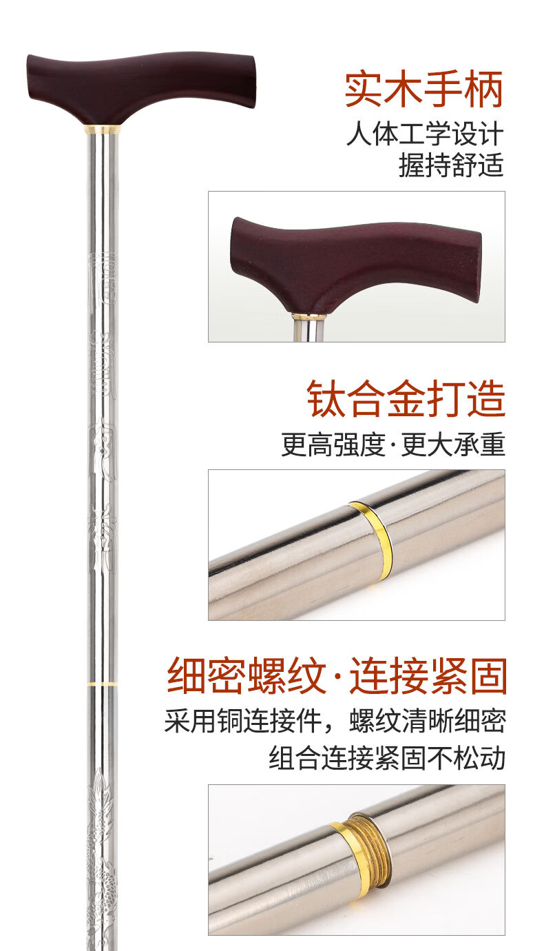 钛途(TITO TITANIUM)钛合金拐杖实木把手助行器老人拐棍便携户外工具便携助行轻便调节 钛合金拐杖