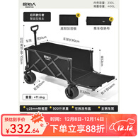 原始人露营推车户外营地拖车便携折叠手推野餐野营快递手拉车遛娃小拉车 400L 聚拢款曜黑-后开模式+双刹万向快拆越野轮