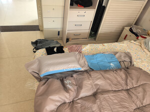 4🈷️7日下午下单,商家次日发货物流顺,9日上午京东小哥送货上门!快递包装严实商品完好!骆驼牌~户外露营保暖便携式双人睡袋,蓝拼灰3.0Kg +尺寸(190+30)*150cm ,除双人用外可拆分2个单人(190*75+210*75),面料防泼水处理防风隔潮易清洁,聚酯纤维填充蓬松透气防寒保暖,睡感柔软舒适亲肤保暖排闷性佳,低温睡袋加厚耐潮御寒空间宽敞,底部双头拉链式开合闷热可通风,收纳尺寸偏大平日最好抽真空存OK