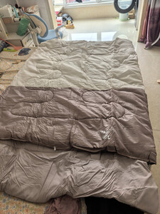 东西挺不错的。保暖性能很好,还可以拆分成单人和双人,天气热还可以单独拆开当被子用。收纳也很好,可以折叠成很小的一块。内层的料子也比较舒服柔软,盖着很舒服。商品也有点小瑕疵,客服也及时解决了。对了内部还包含了两个充气的枕头,很不错,节省位置。总体还是很满意。